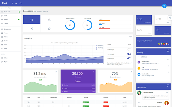 Naut is a premium Admin Template for web applications, powerful code and a clean design make it very easy to use and implement. It’s a fully responsive template with various layouts and sidebar options and styles. Keeps your code dry!