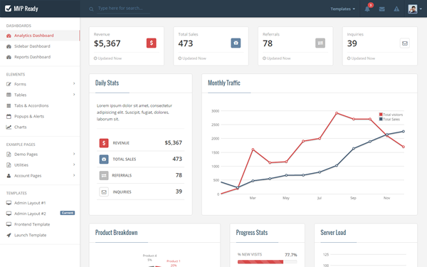 MVP Ready comes stocked with the basic essentials needed to significantly cut the development time of your next project. Use our ready made pages and customized components to jumpstart your project.